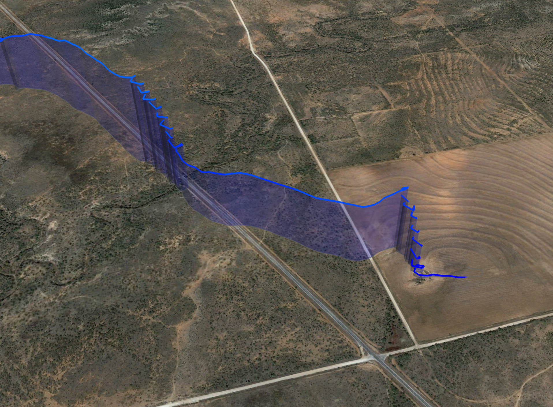 I kept hauling south, increasingly pushing bar. I looked back over my shoulder and saw the gust front: a red wall of dirt, about 60 m tall, and several km wide, chasing after me. At that point I decided it’s not worth the risk. I’td try to land before the gust front.